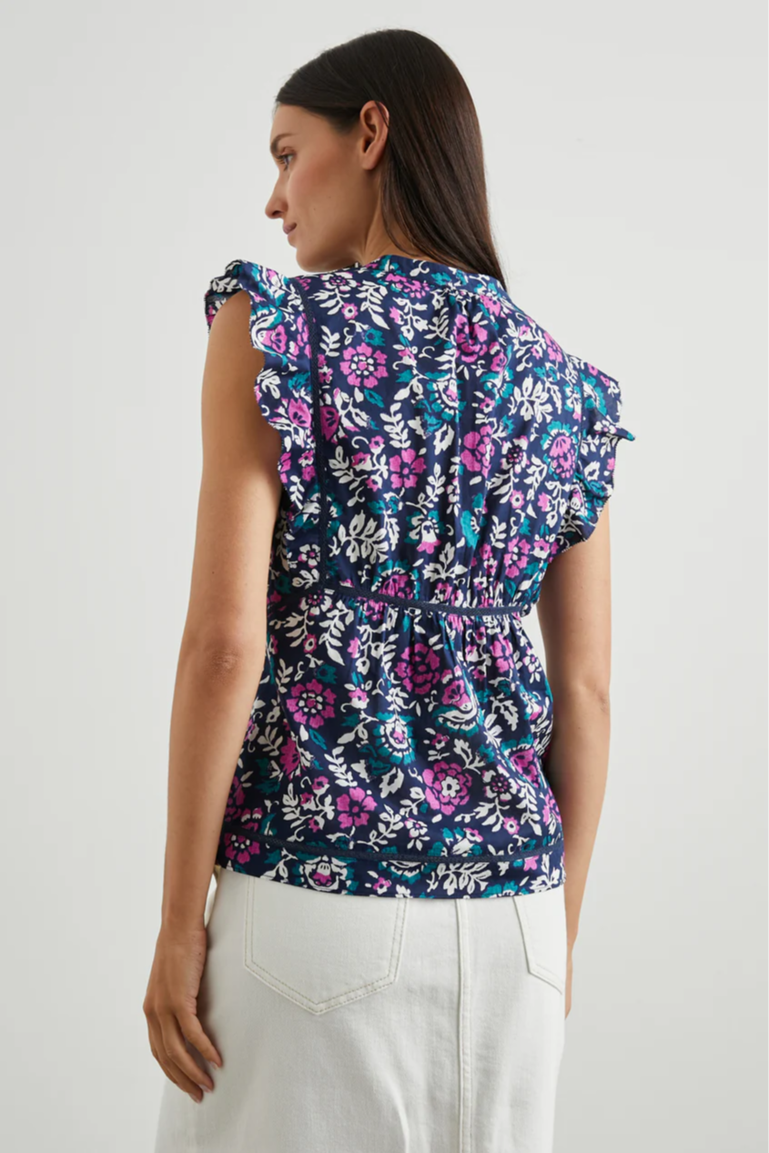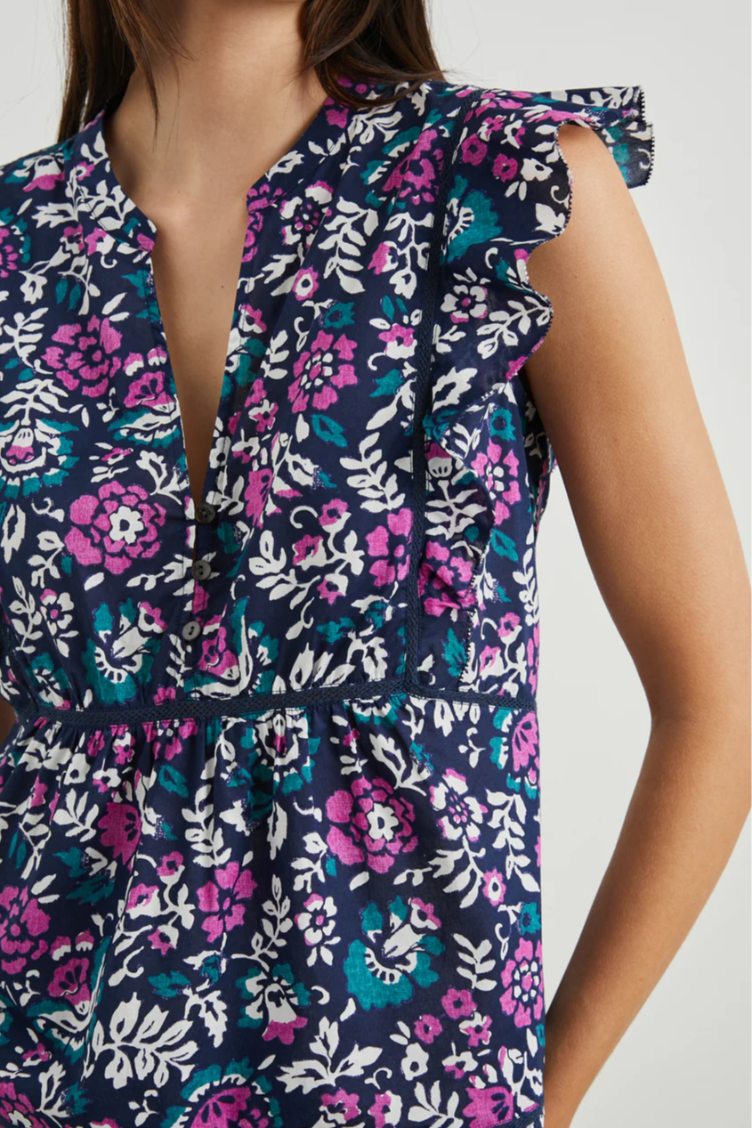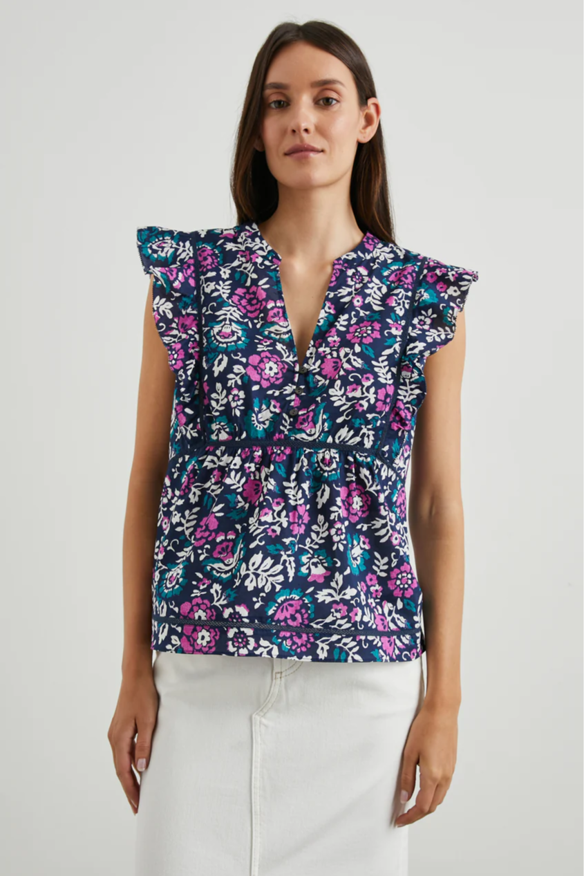 Step out in style this season in the eye-catching Misha. This top is made from seriously soft beach cotton in a bold floral pattern. It features feminine flutter sleeves, a v-neckline, and contouring stitching throughout.