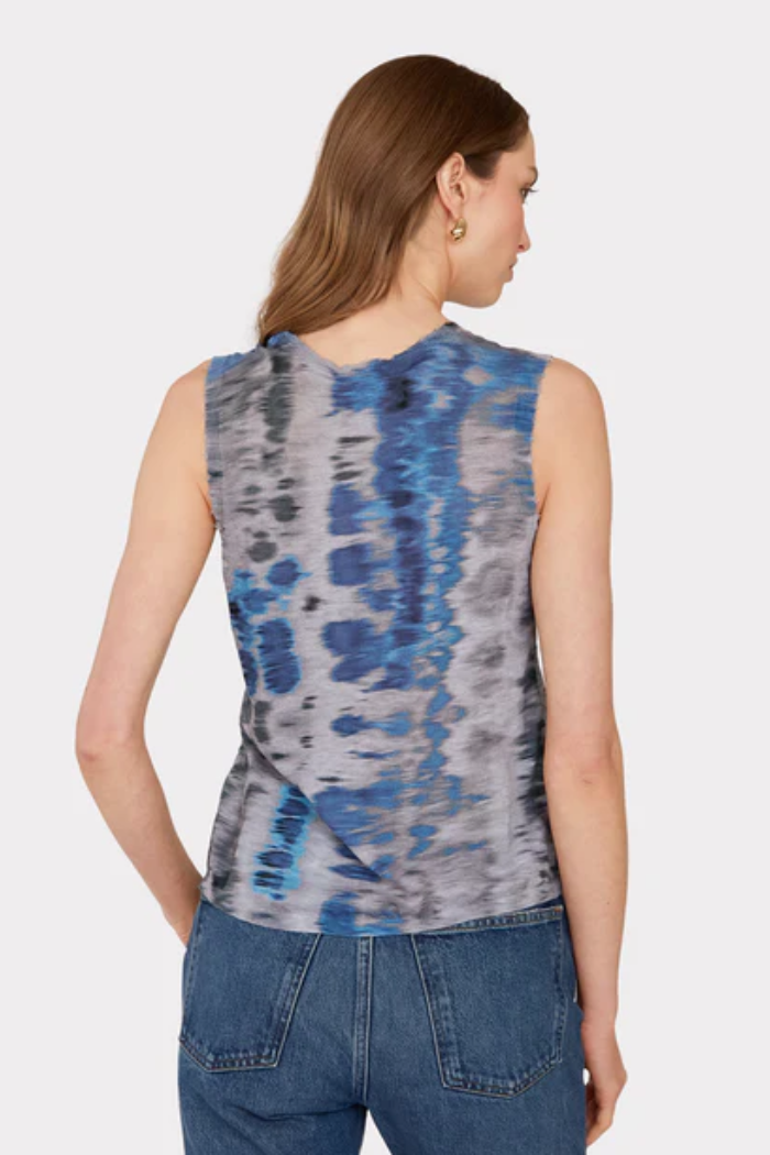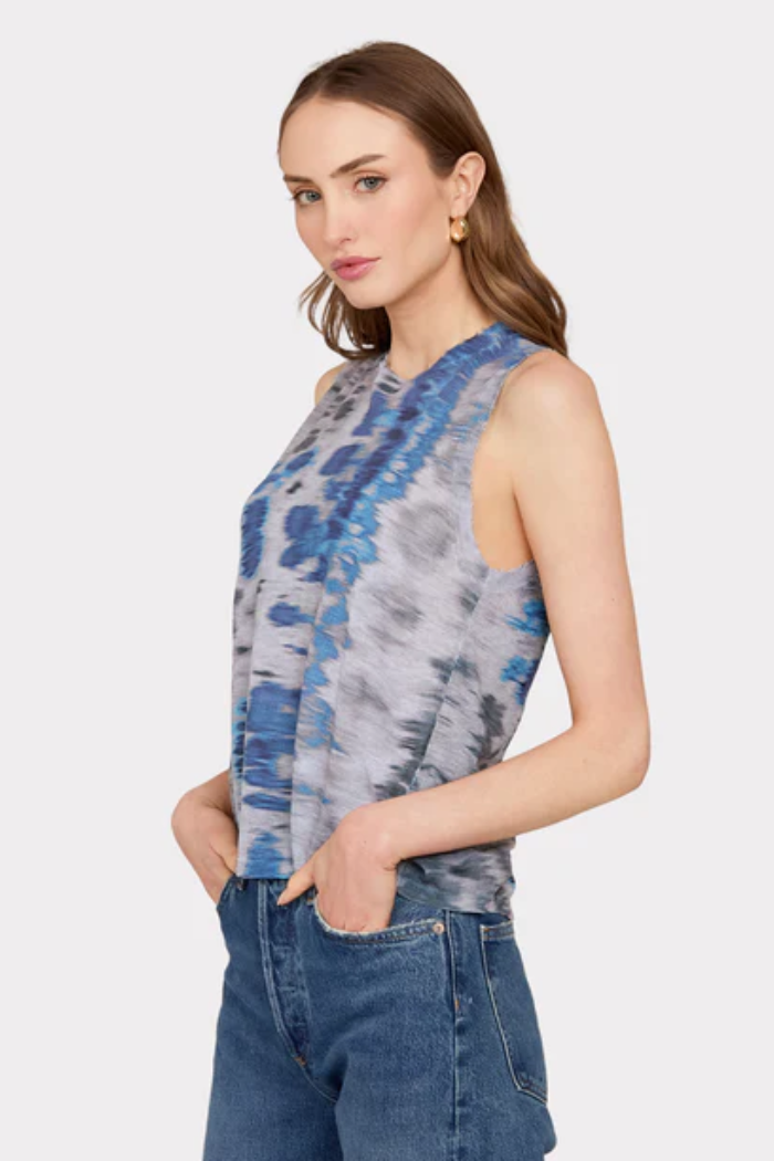 Autumn Cashmere's tank muscle tee features a blurred animal print with distressed details on the neckline and armhole.
