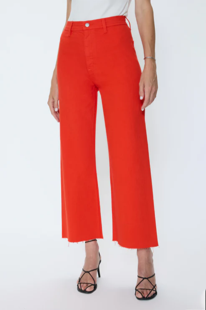 The kind of wide leg that transforms your wardrobe, Penny sits high on the waist with a relaxed, flowing leg and cropped hem. Ultra-wide proportions create a flattering shape while the striking Chili red tone makes this a seasonal standout.