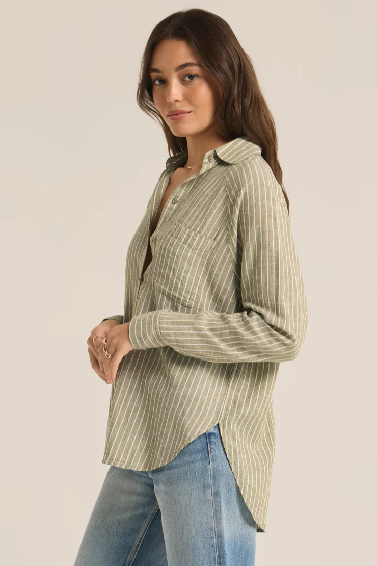 You'll love the easy, breezy comfort of this classic stripe button-up. Featuring that soft, drapey feel you look for, you can wear it alone or as a lightweight layer for an effortless look, no matter where your day takes you.