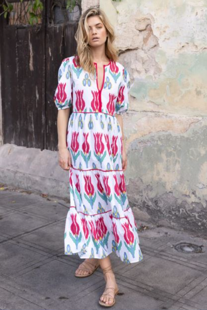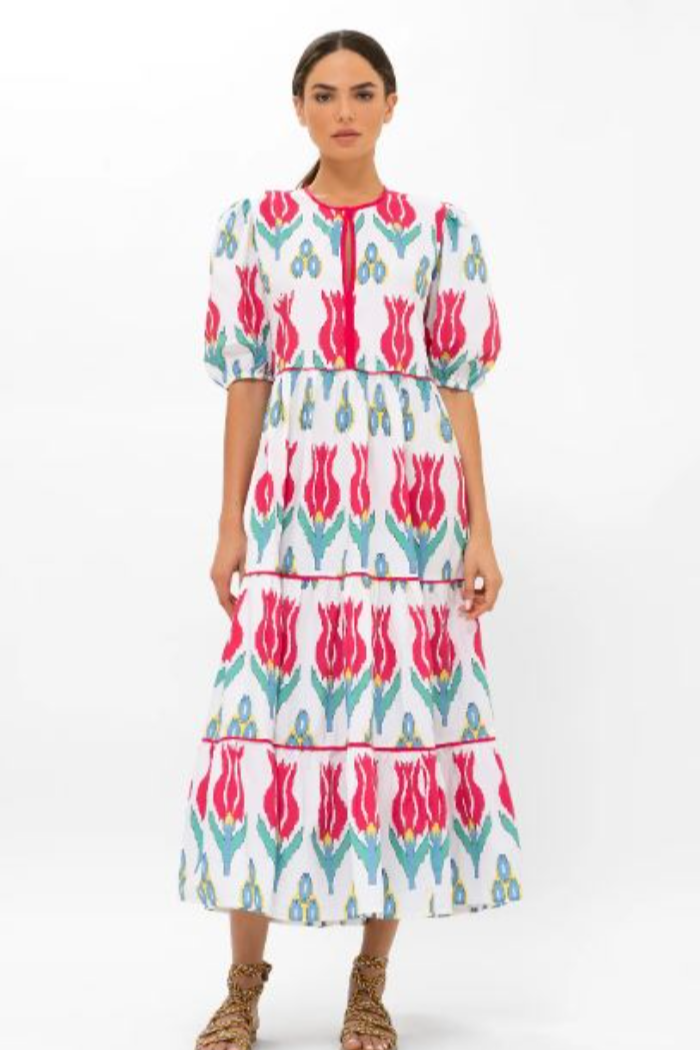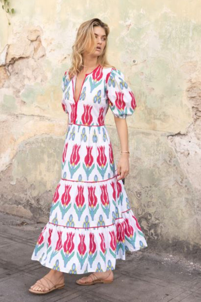 This elegant Puff Sleeve Maxi creates a dramatic silhouette with its softly structured cotton poplin and signature puff sleeves. Practical details including discreet pockets and a secure hook and eye closure at the neck.