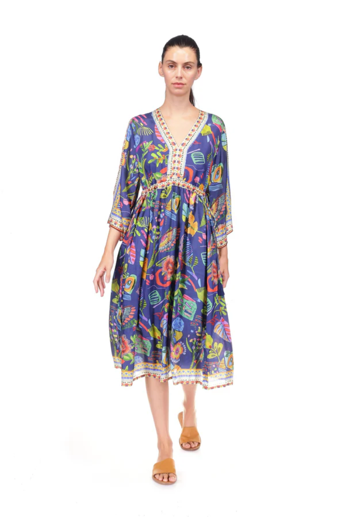 Get ready to stand out in the Saskia Slip Dress by Johnny Was in Farout. This playful and quirky dress features a unique print and a flattering slip silhouette. Perfect for any occasion, this dress will add some fun to your wardrobe.