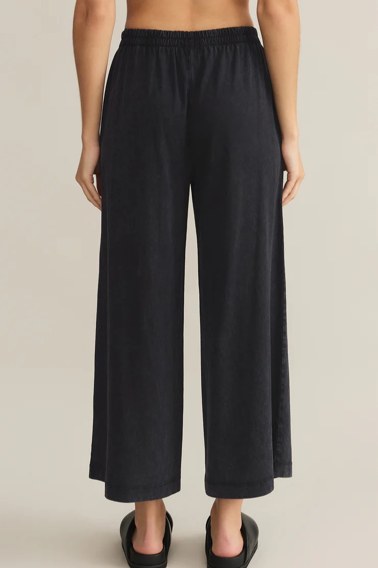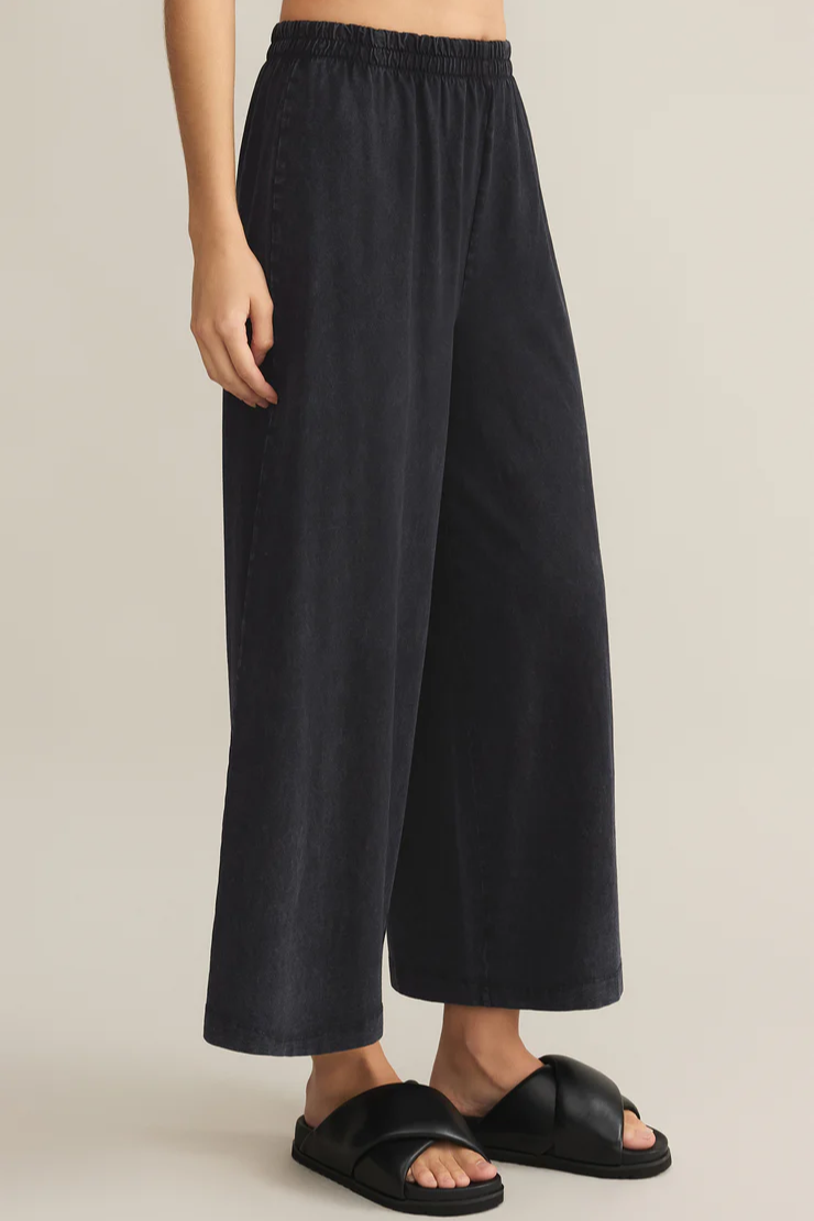 This flare pant is made with a 100% cotton jersey knit fabric and features a wide flare silhouette with an elastic waistband. This pant is a relaxed but stylish piece that looks so good with any of our everyday tops.