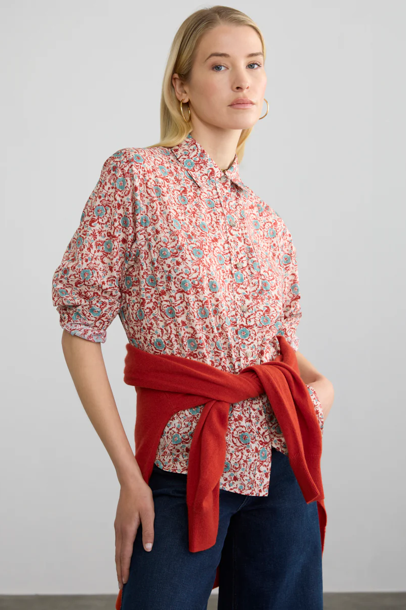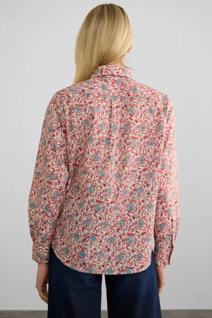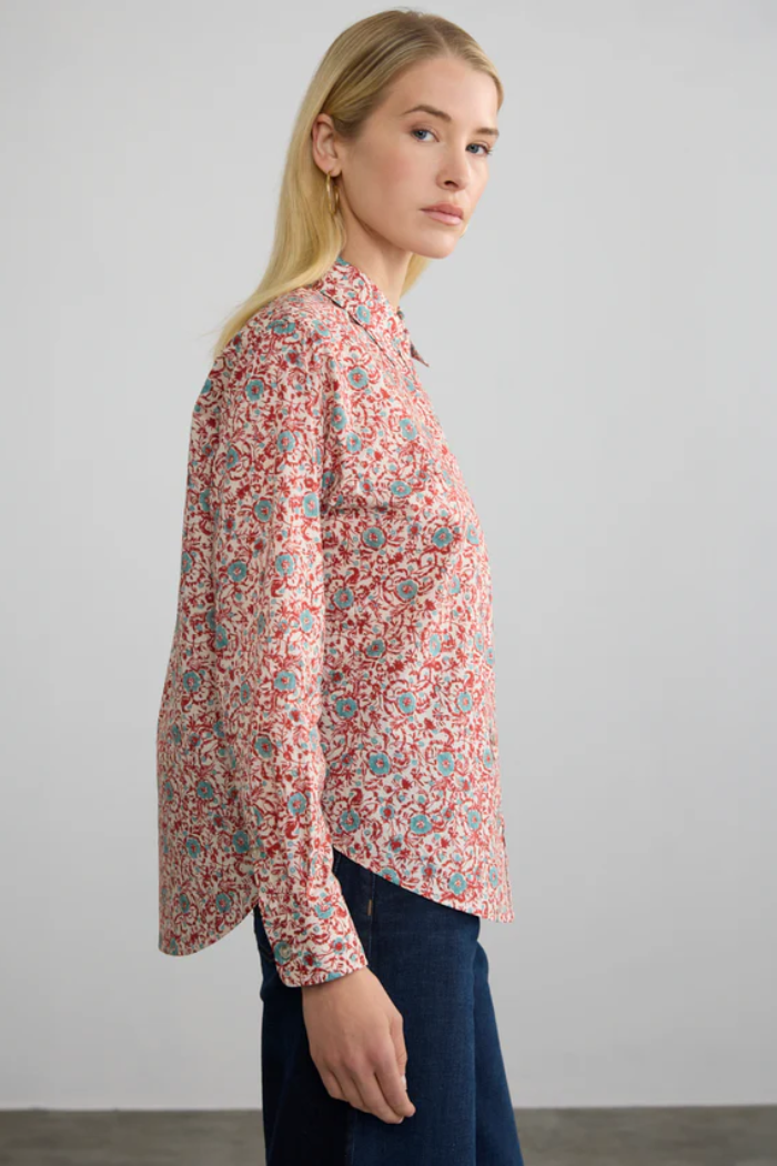 This classic button-down shirt features a watercolor-style floral print in our seasonal colors. It's crafted from crisp organic cotton and prewashed for extra softness. Perfect for layering or wearing on its own.