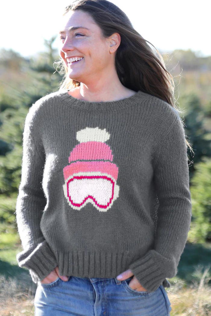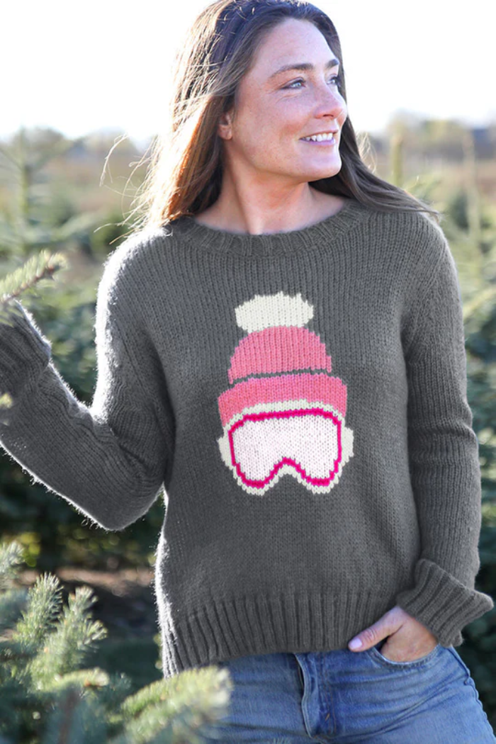 An amazingly soft and cozy crew that features a slightly cropped, relaxed fit body. The Ski Goggles Hat graphic is knit directly into the sweater. Details include ribbing on the neckline, hem, and cuffs.