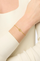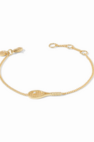 A sculpted golden racquet hitting a sparkling gemstone tennis ball, held by a delicate curb chain.
