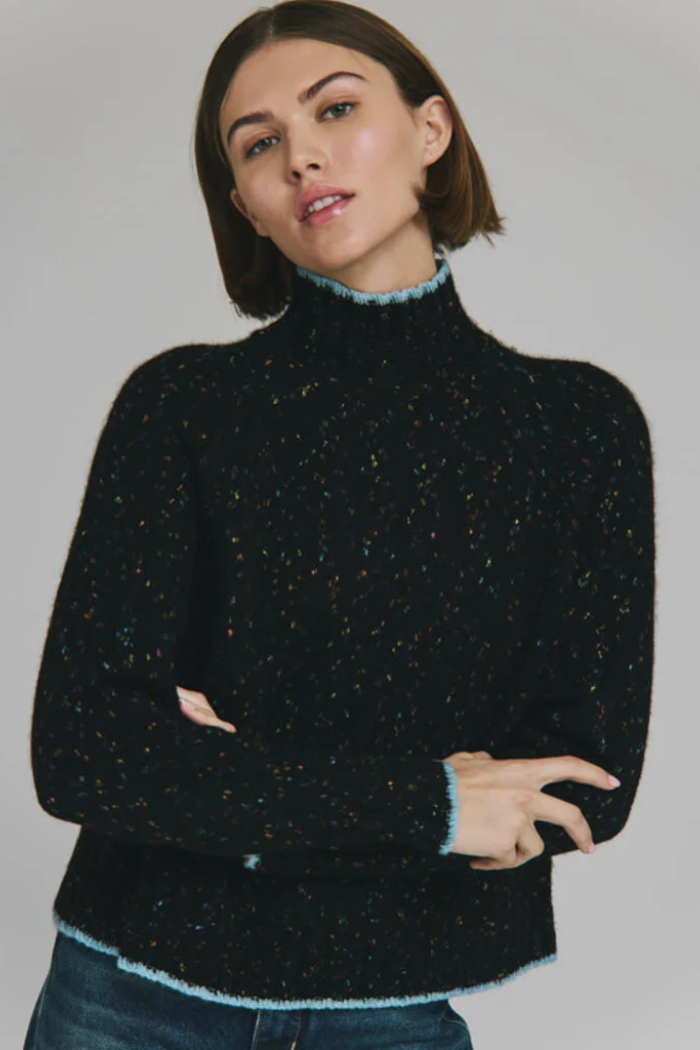 Crafted from a soft, fuzzy alpaca wool blend, the Tipped Tweed Mockneck from Autumn Cashmere is a cozy warm knit done in a galaxy yarn. This blended yarn is the cozy hug you want on a chilly day and a beautiful classic piece to last.