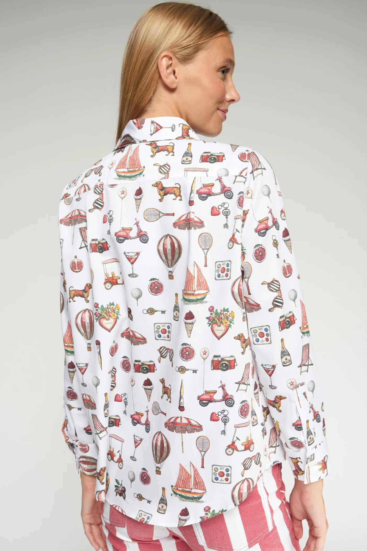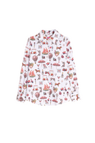 A shirt that instantly makes you smile. The Illustrated Motifs Print Shirt brings a playful twist to everyday dressing, with a detailed print that feels fun, fresh and full of personality — perfect for spring and holiday wardrobes alike.