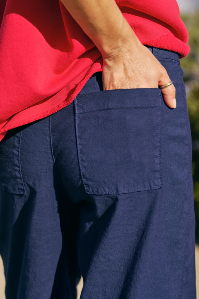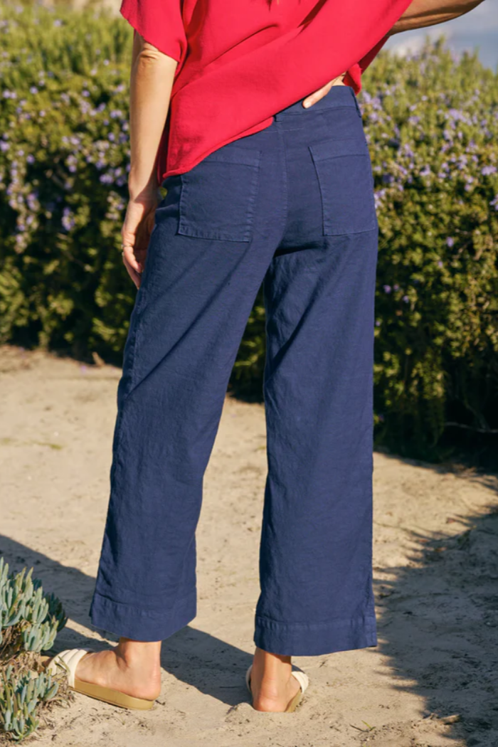 Wexford, the wear-with-anything linen pant. Designed for a relaxed fit with a wide-leg and slightly cropped length.