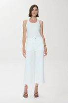 Zooey updates the classic utility pant with a high rise, streamlined straight leg, and cropped inseam that gives the silhouette a contemporary new feel while patch pockets offer practical appeal. Crafted in Le Blanc, the bright white wash adds a polished contrast to the pant’s workwear roots.